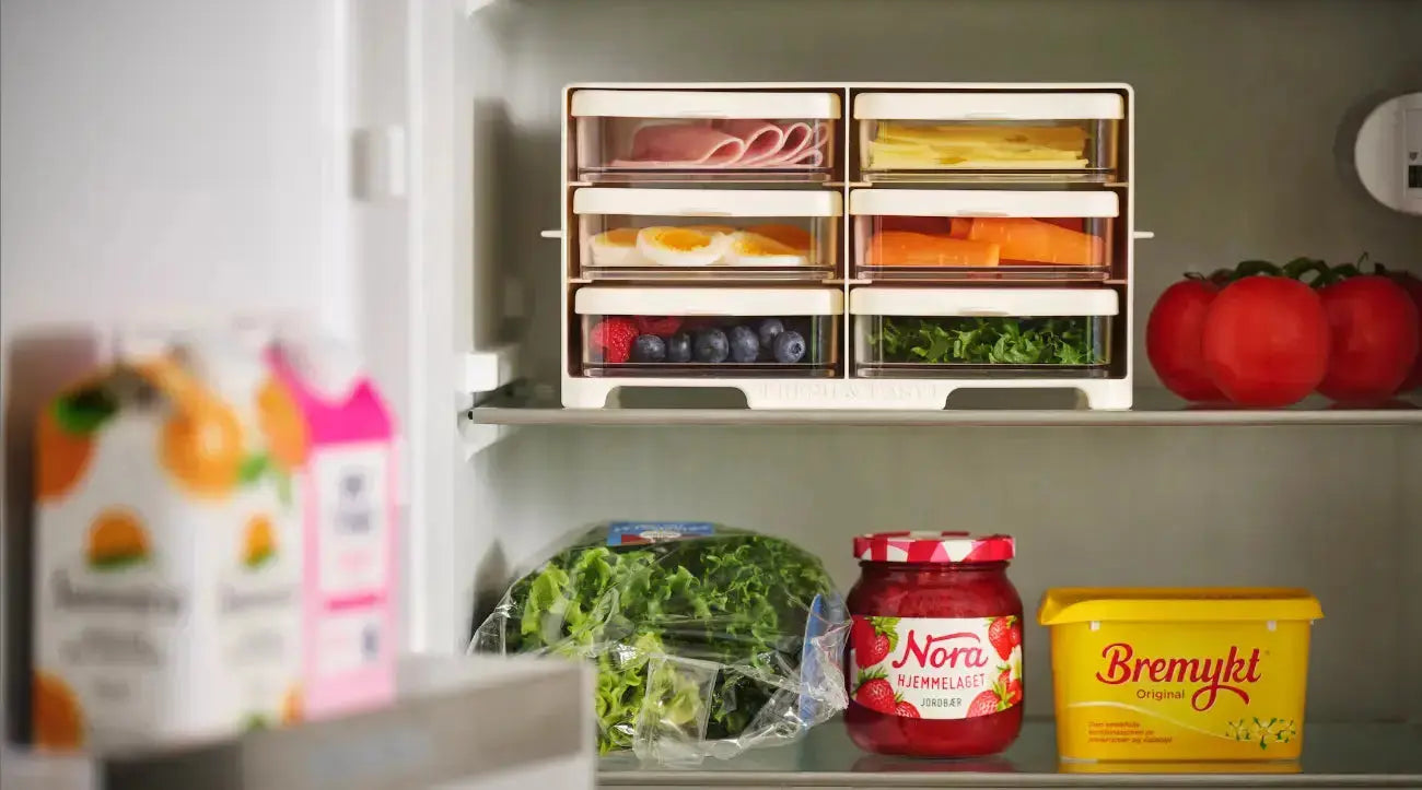 Med Fresh & Easy Rack og bokser får du endelig system – alt har sin faste plass, du finner maten raskt, og ingenting blir glemt bakerst.